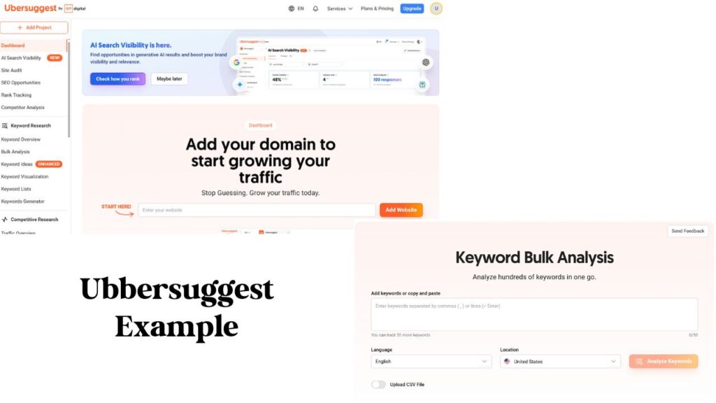 Copy those keywords into Ubersuggest’s bulk keyword analysis tool.